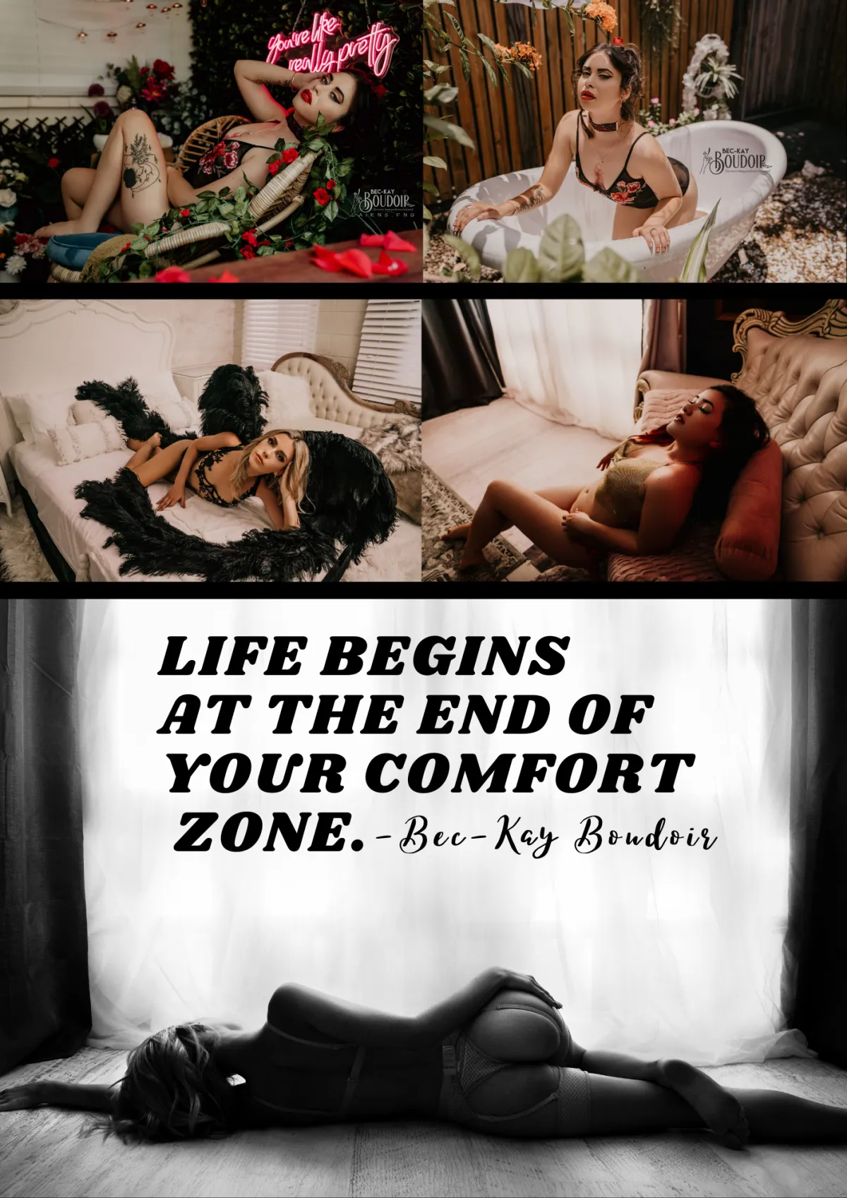 At Bec-Kay Boudoir, we are committed to providing an exceptional boudoir experience that goes beyond photography. We invite you to embark on a journey of self-love, empowerment, and celebration of your unique beauty.