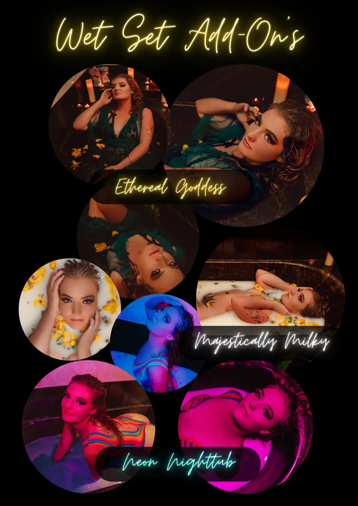 Extensive Studio Sets: Our studio boasts an extensive collection of indoor-only sets that will transport you to a world of fantasy and glamour. From our rock n roll set to our gamer set, mermaid bath set, neon hallway set, and more, each set is meticulously designed to create a captivating backdrop for your boudoir shoot. We believe that every client deserves a one-of-a-kind experience that reflects their individuality.